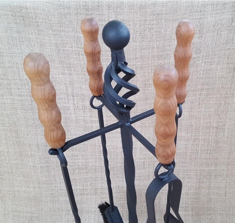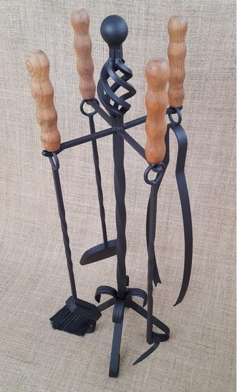 Kandallók, cserépkályhák égésterének tisztításához. Piszkavas Lapát Seprű Rönkfogó