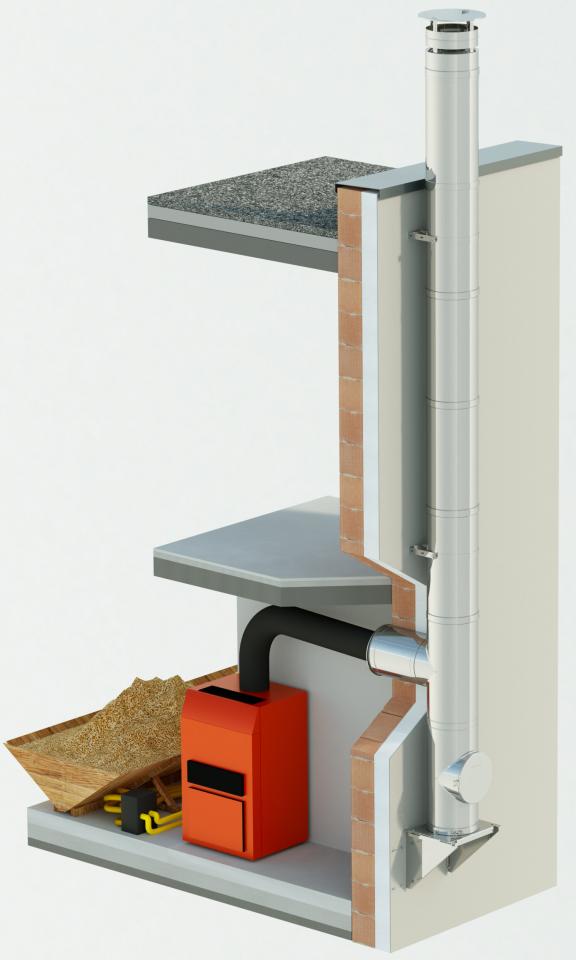 Kerámiabélésű, szigetelt, egyedi égéstermék elvezető