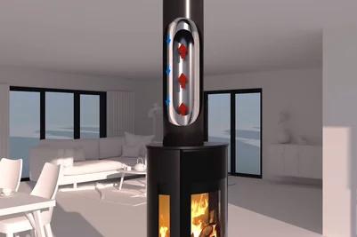A rendszer rozsdamentes acél belső bélésből, horganyzott acél, porszórt festésű külső köpenyből, valamint belső és külső szigetelésből áll. A köztük lévő térben áramlik a levegő a kandalló égésteréhez.
